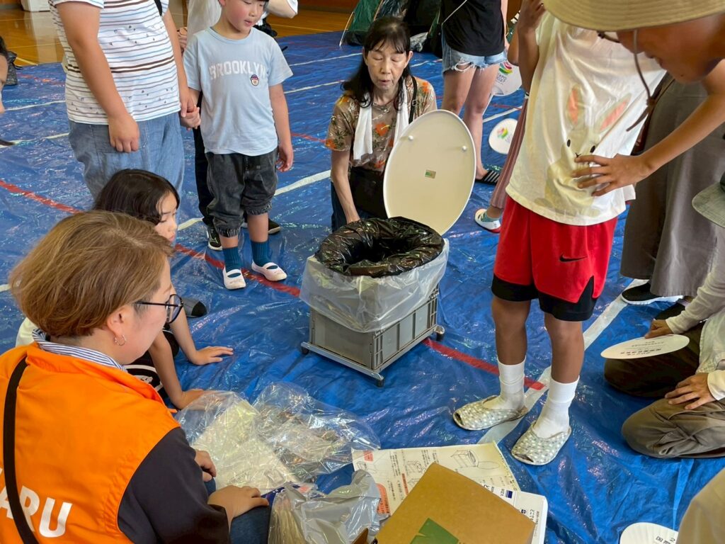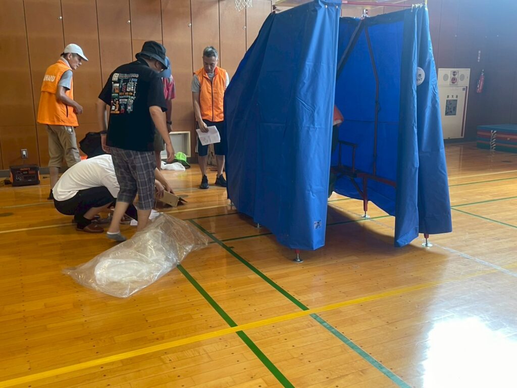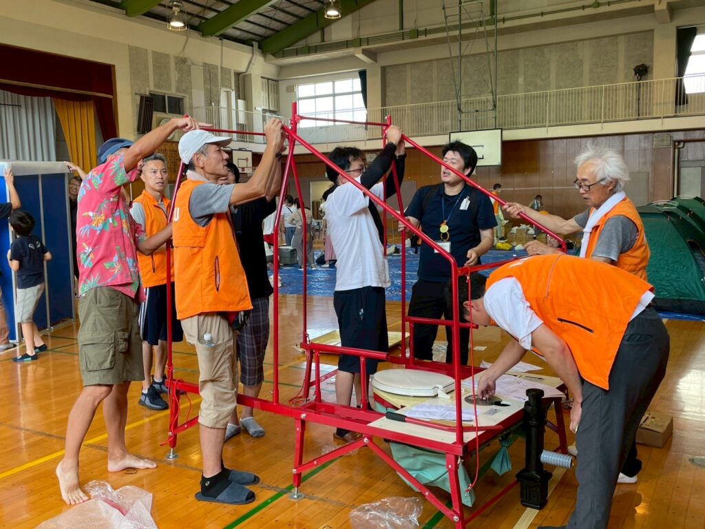 毎年、秋に実施していましたが今年は夏の訓練となりました。今回は何種類か用意された、災害用のトイレの組み立てを主に参加された方で実施しました。車いす用トイレの組み立てを行いました、組み立てて見て、組み立てが大変なこと、廃物の処理方法や囲いが密閉される頃が分かり、夏の利用には難しいなどいくつかの課題も解りました。災害時の断水などで必ず必要となるものだけに今回の訓練がいざという時に役立つことと思います。ご参加された皆様、お疲れさまでした。今回の体験をご近所やお知り合いの方と共有していただけましたら幸いです。